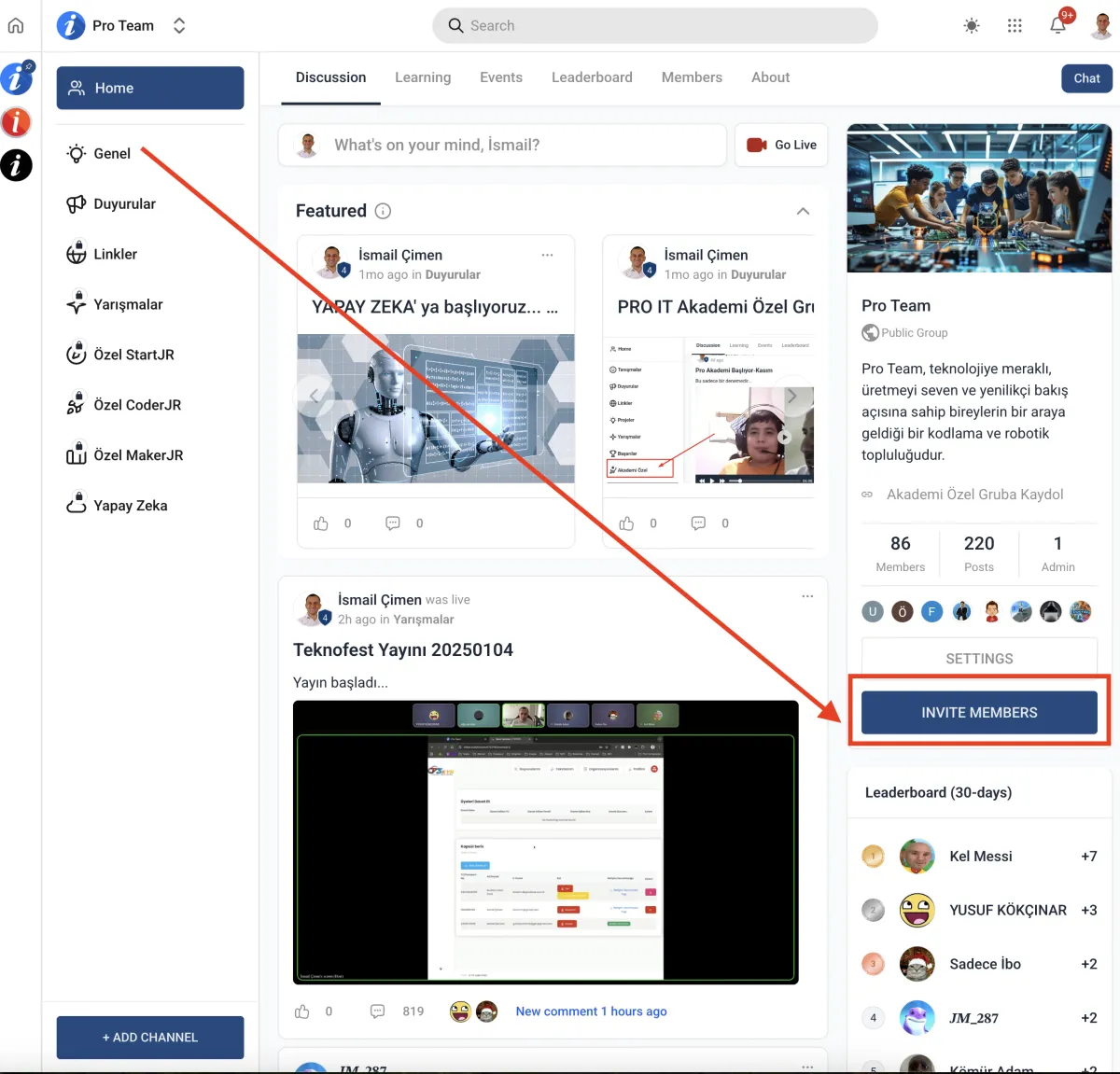 İçeriye girdiğiniz zaman PRO panelde takıma katılabilirsin.